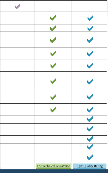 TA: Technical Assistance QR: Quality Rating Professional QR: Quality Rating